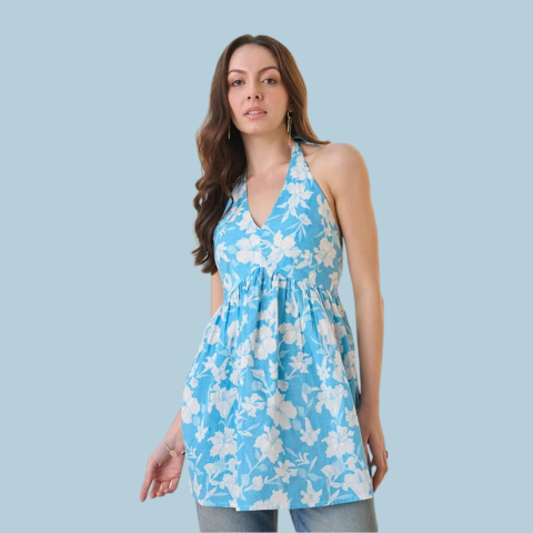 Material composition: 100% CottonStyle: WesternSleeve type: SleevelessNeck style: Halter NeckCountry of Origin: India